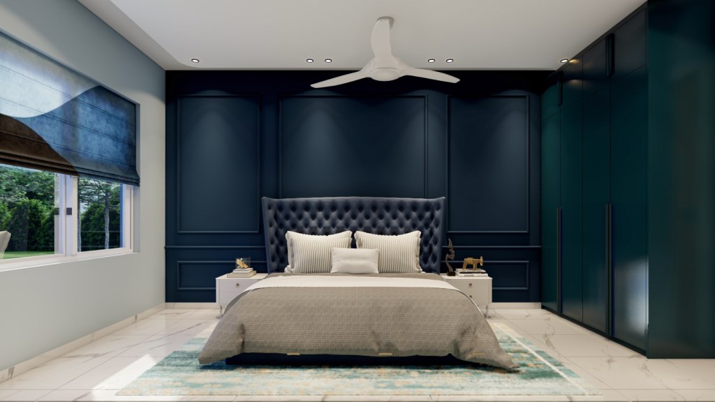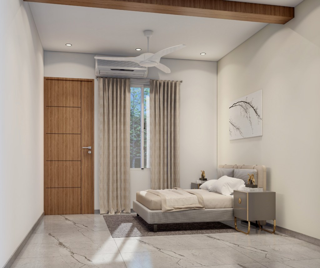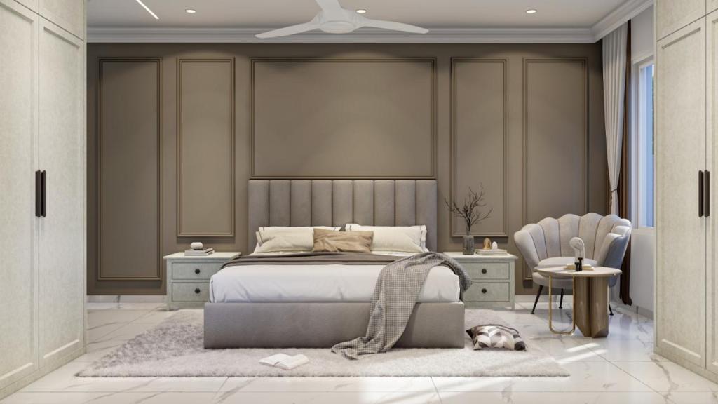 Stylish bedroom design featuring a cozy bed, elegant décor, and modern furnishings.Modern bedroom design featuring a plush bed, stylish furniture, and elegant decor.